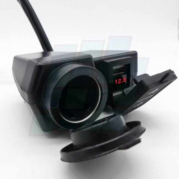 TOMACORRIENTE PARA MOTO 2 USB + 1 HEMBRA ENCEND + VOLTIMETRO DIGITAL + TAPA 12V