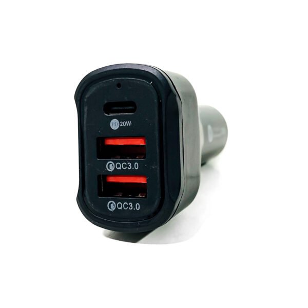 CARGADOR DE CELULAR 2 USB + 1 TIPO C 20W 12/24V COLOR NEGRO