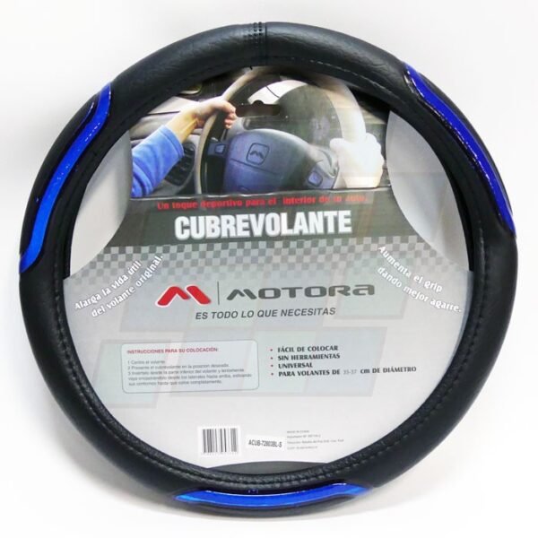 cubre volante 40cm negro + 3 lineas reflectivo azul
