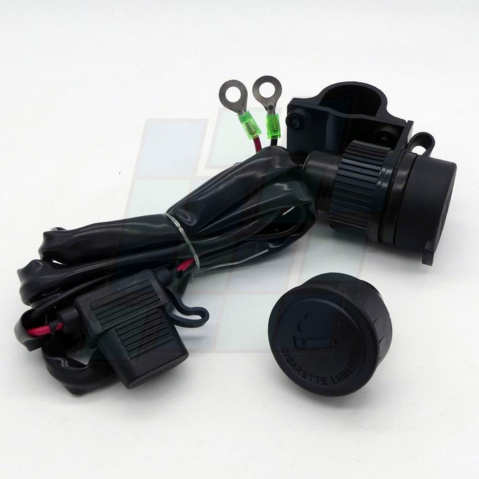 TOMACORRIENTE CON ENCENDEDOR PARA MOTO CON SOPORTE PARA MANUBRIO, CON TAPA Y PORTAFUSIBLE