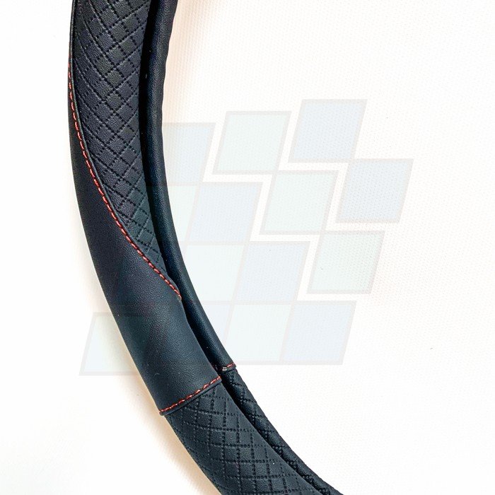 CUBRE VOLANTE 38CM NEGRO CON CUADRILLE TRAMADO COSTURA ROJA